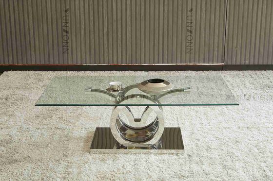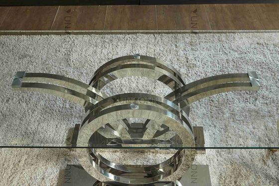 カモメはステンレス鋼の基盤のガラス上のダイニング テーブル フレームの銀を設計する