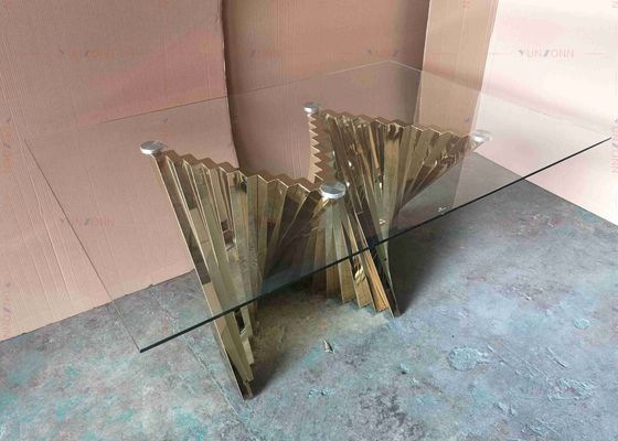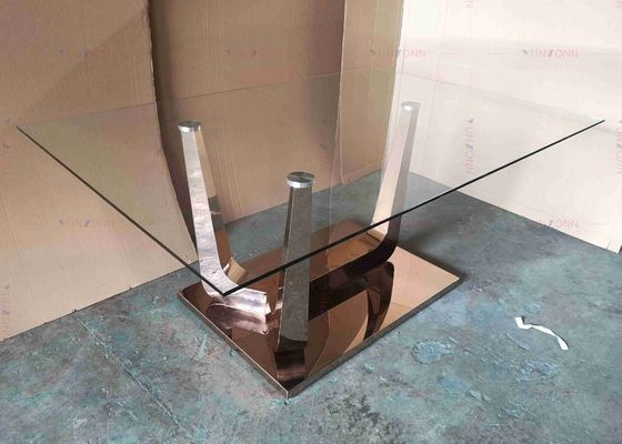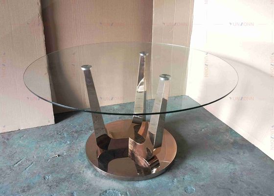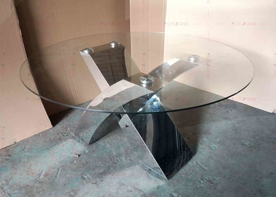 光沢のガラス ダイニング テーブルはSSのテーブルの基盤を置いた