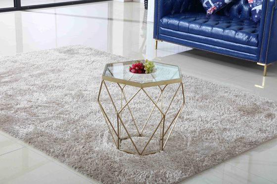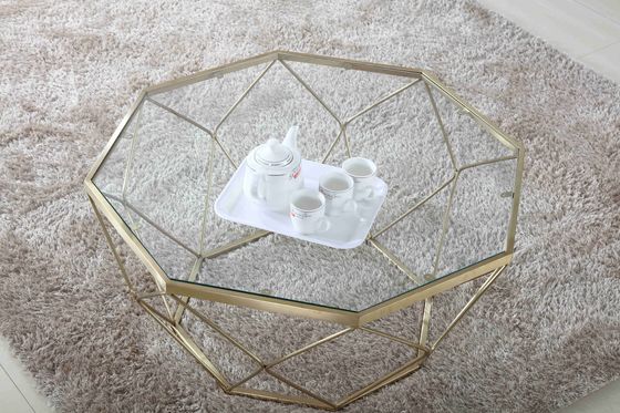 ステンレス鋼の現代ガラス コーヒー テーブルは鋼鉄ステンレス製様式を置く生存パッキングの真珠部屋の茶をカスタマイズした