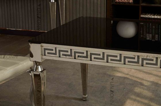 食堂のための切り分けられた端そして角の足を搭載する簡潔で黒いガラス テーブル