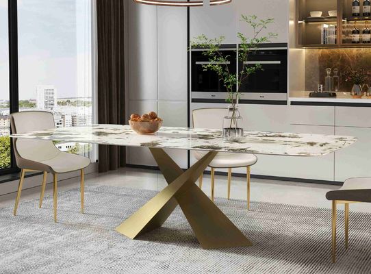 明るい石板ダイニング テーブルの小さいアパート デザイナー ダイニング テーブル北欧の現代ライト贅沢な青銅色のダイニング テーブル