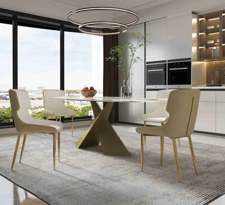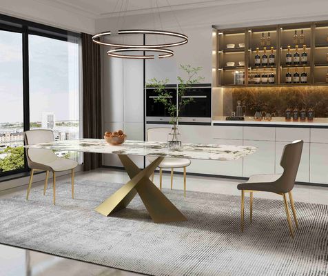 多くのタイプのから選ぶべきこのダイニング テーブルのための三脚がある。新しく物質的な石板は卓上として、大理石パターン パネル、断念と耐久そして耐久力のある大理石の厚さ使用される。