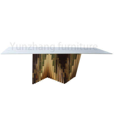 大理石のテーブルの上とメタル・ベース贅沢な金の不規則なダイニング テーブル