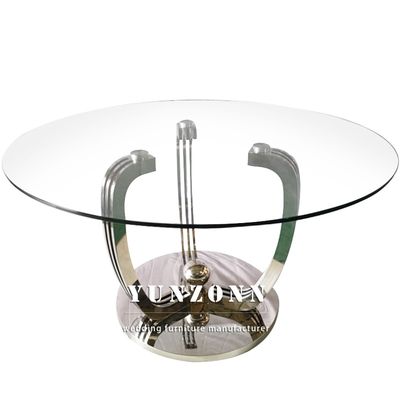 金の基盤が付いている贅沢なモデル円形のダイニング テーブルの透明な10mm厚い緩和されたガラス上