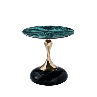 高級センターテーブル モダン リビングルーム 家具 丸く折りたたまれた端テーブル 黒金 金属 ガラス コーヒーテーブル