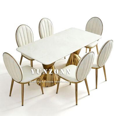 Q3:あなたの製品の材料は何ですか? A3: テーブルと椅子にはステンレス鋼のフレームがあり,テーブルには硬化ガラス,大理石または木材があります. 椅子のクッションは高密度スポンジと高品質の革または布で作られています.