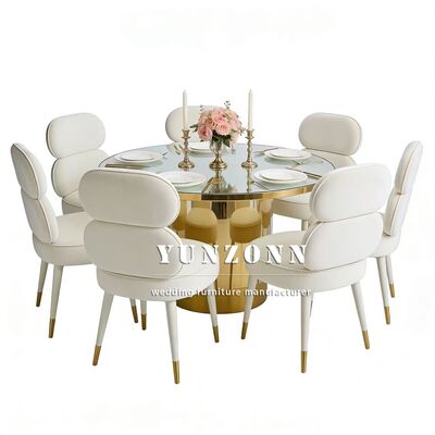 Q3:あなたの製品の材料は何ですか? A3: テーブルと椅子にはステンレス鋼のフレームがあり,テーブルには硬化ガラス,大理石または木材があります. 椅子のクッションは高密度スポンジと高品質の革または布で作られています.