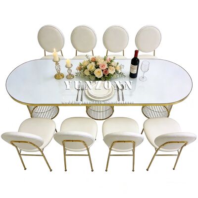 | 製品名: | イベント用新品スタイルバンケットダイニングテーブル オーバル型 ゴールドスチール脚 ダイニングルーム ウェディングテーブル イベント装飾用 |