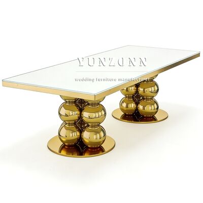 | Product Name: | Modern Luxury Design Golden Wedding Table Mirror Glass Top Stainless Steel Restaurant & Hotel Banquet Dining Furniture |