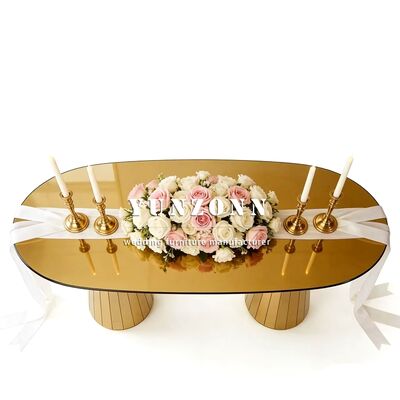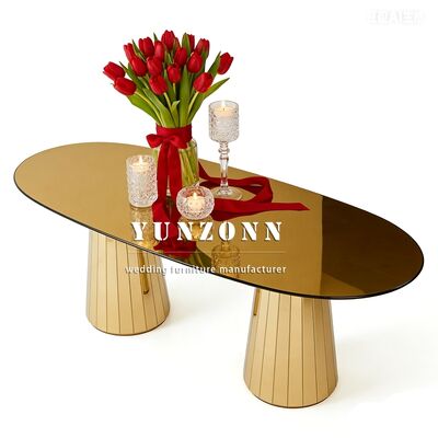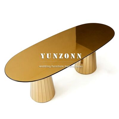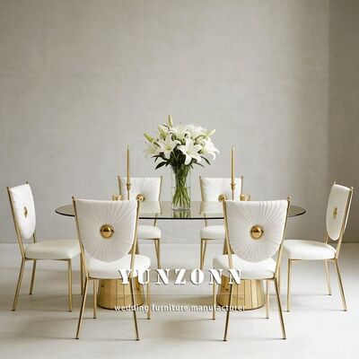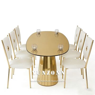 | 製品名: | ゴールドステンレスダイニングテーブル&チェアセット ガラス天板 ウェディング家具 ホテル用 |