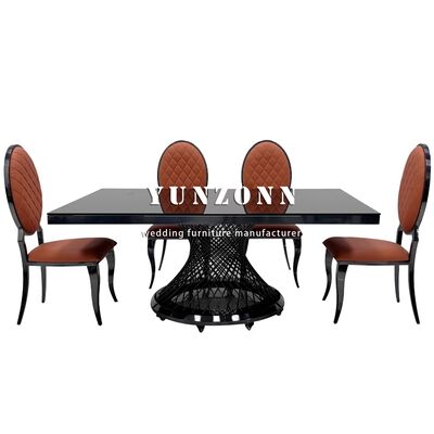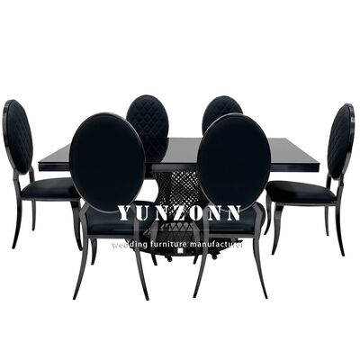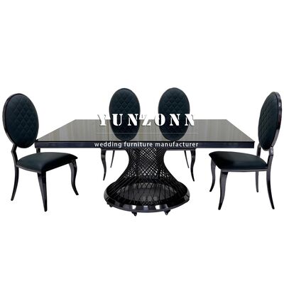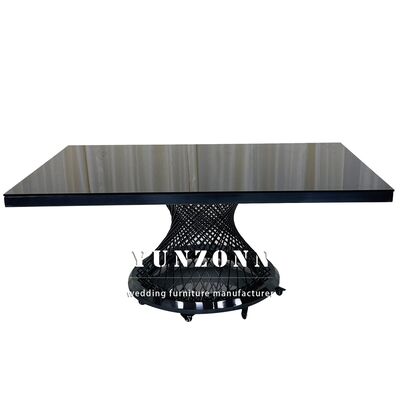 ホテル バンケット グラス トップ 黒 食卓 ステンレス スチール 正方形 金属 結婚式 テーブル