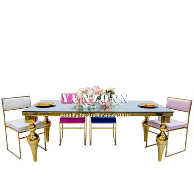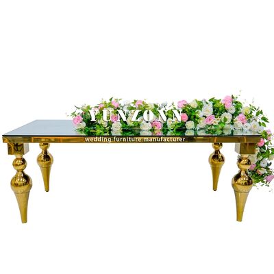 | 商品名: | フォシャン工場 安い価格 ホテル ダイニング 家具 ゴールド ステンレス スチール ミラー ガラス テーブル トップ 結婚式 テーブル |