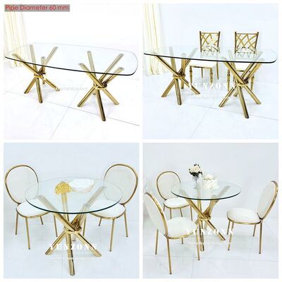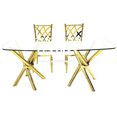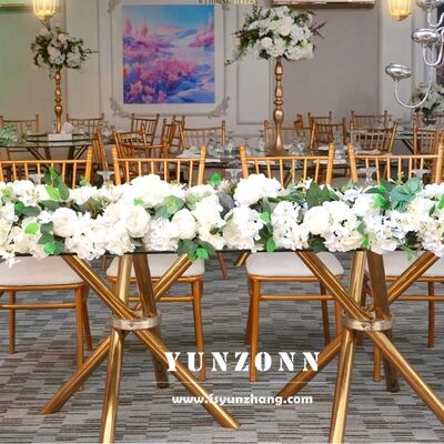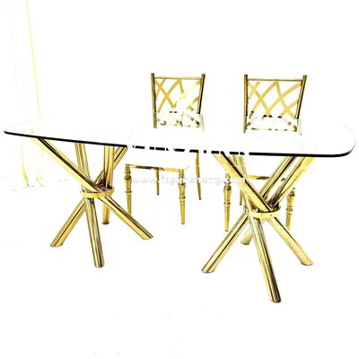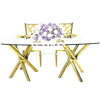 | 製品名: | 軽量で安定した安価なゴールデンステンレススチールクロスレッグクリアガラスイベントウェディングバンケットテーブル |