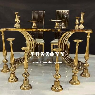 | 商品名: | 豪華 ゴールド ステンレス ステンレス ウェディング テーブル グラス ダイニング テーブル ホテル 用 エレガント イベント 家具 |