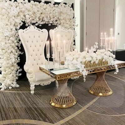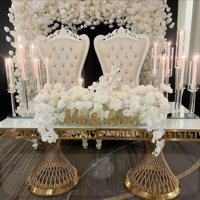 | 製品名: | ダイニングレストランパーティーホテルホール向けのカスタムゴールドステンレススチール長方形ウェディングテーブルモダンメタルデザイン |