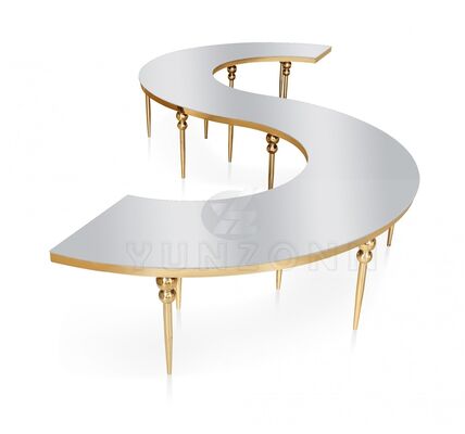 | 製品名: | モダンS字型ダイニングテーブルチェアセット レストラン ウェディング ガラス メタル ホテル家具 屋外ホール用 |