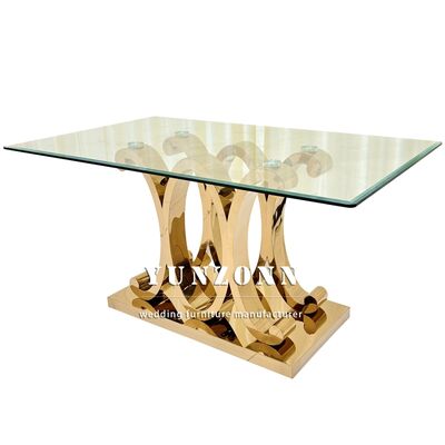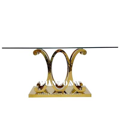 | 产品名称: | 新郎新娘婚礼活动及酒店使用的特别金色不锈钢豪华玻璃餐桌套装 |