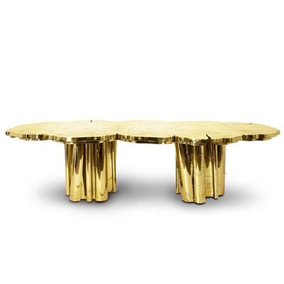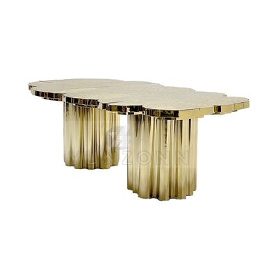 | 製品名: | ホテル、結婚式、別荘向けのモダンで豪華なデザインの木の幹型ゴールドメタルダイニングテーブル |
