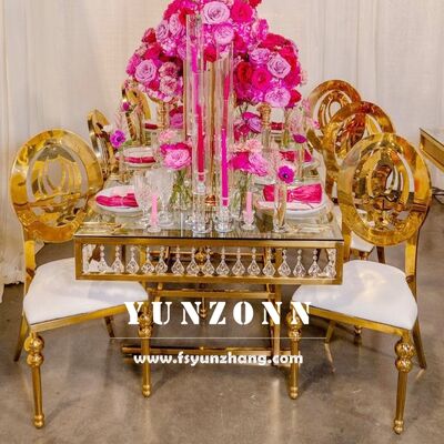 | 製品名: | 雲章家具 金色不銹鋼水晶宴會餐桌 豪華婚禮桌椅出售 |