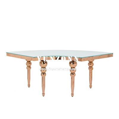 | 製品名: | ホテル、レストラン、結婚式、屋外での使用に適したゴールド&ホワイトサーペンタインダイニングテーブル(ホワイトガラス天板付き) |