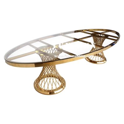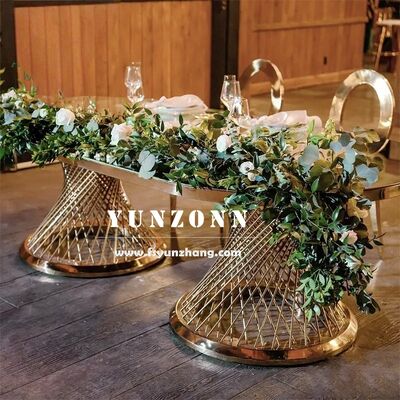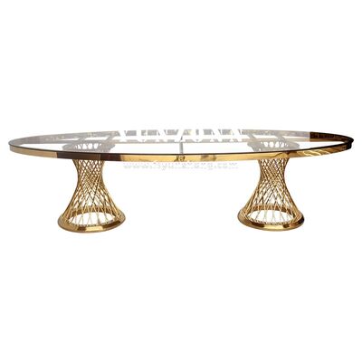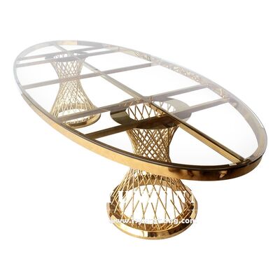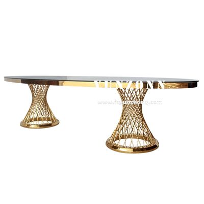 ウェディングパーティーやホテルの家具に最適なラグジュアリーゴールドステンレススチールオーバルテーブル&チェアセット