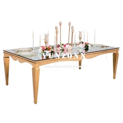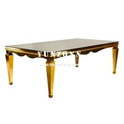 | 製品名: | モダンゴールドステンレススチールミラーガラス製ダイニングテーブル ホテル ウェディング パーティー アウトドア イベント バンケットテーブル |