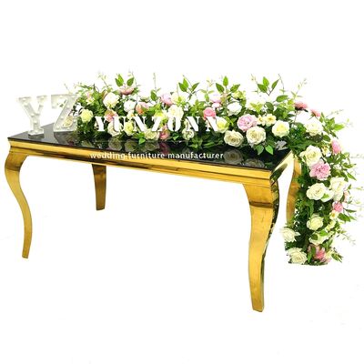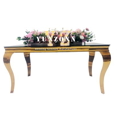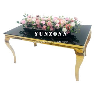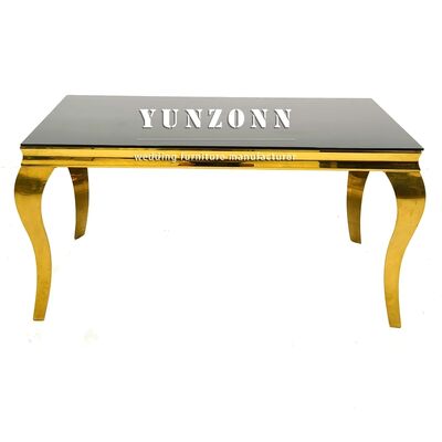 | 製品名: | ヨーロピアンスタイルのダイニングテーブルセット卸売モダンブラック強化ガラスとステンレススチール製、宴会やホテル向け | ||
