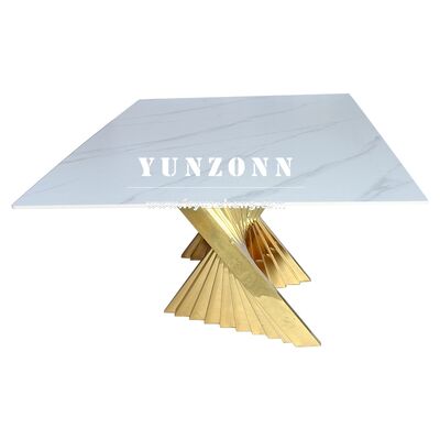 | 製品名: | 強化ガラステーブルトップ付きの高級高品質ゴールド/シルバーステンレス鋼の結婚式のダイニングテーブル |