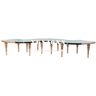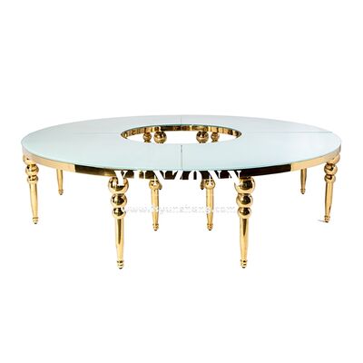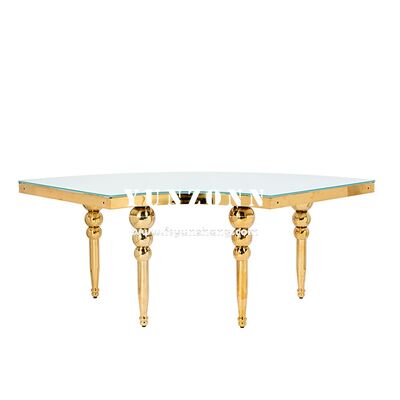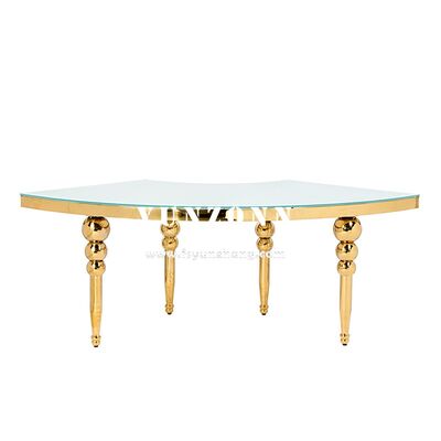 | 製品名: | ステンレススチール製ムーンウェディングダイニングテーブル、ハーフラウンドガラス製トップ付き(バンケット、リビングルーム、ホール、ホテル、ホテル家具用) |