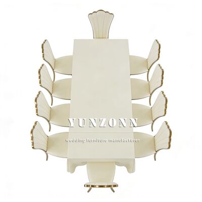 Q3: あなたの製品の素材は何ですか? A3: テーブルと椅子のステンレススチールフレーム、テーブルの強化ガラス。大理石または木材。椅子のクッションは高密度スポンジと高品質の革または布で作られています。