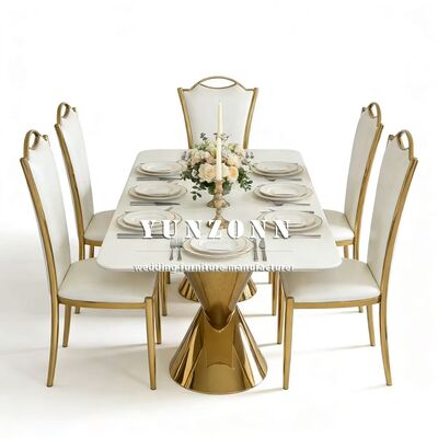 Q3: あなたの製品の素材は何ですか? A3: テーブルと椅子のステンレススチールフレーム、テーブルの強化ガラス;大理石または木材。椅子のクッションは高密度スポンジと高品質の革または布で作られています。